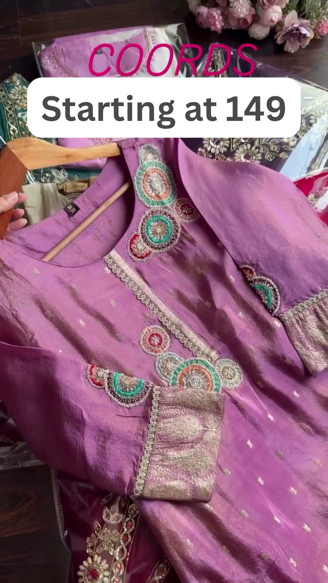 The text “Starting at 149” emphasizes affordability, making these designer-inspired co-ord sets accessible to a wide audience. Despite the budget-friendly pricing, the sets appear premium due to their detailed embroidery and coordinated styling.