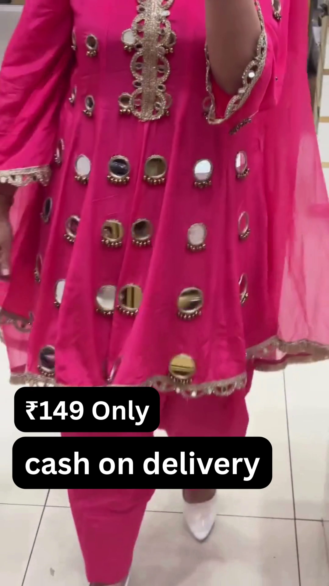 At just ₹149 with cash on delivery available, this suit offers exceptional value. It allows you to enjoy premium-looking ethnic wear without spending a fortune. Style it with statement earrings and traditional footwear to complete the look. This rani pink mirror work suit is a must-have for anyone who loves vibrant ethnic fashion with a touch of sparkle.